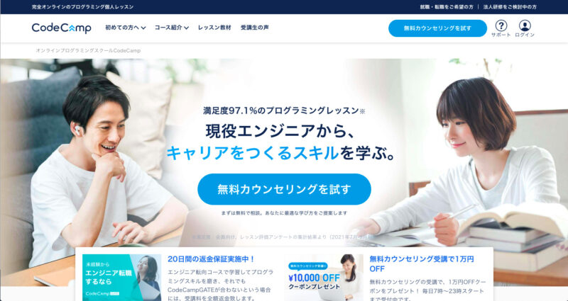 - オンラインでのマンツーマン指導によって97.1%の受講生が満足!*2
